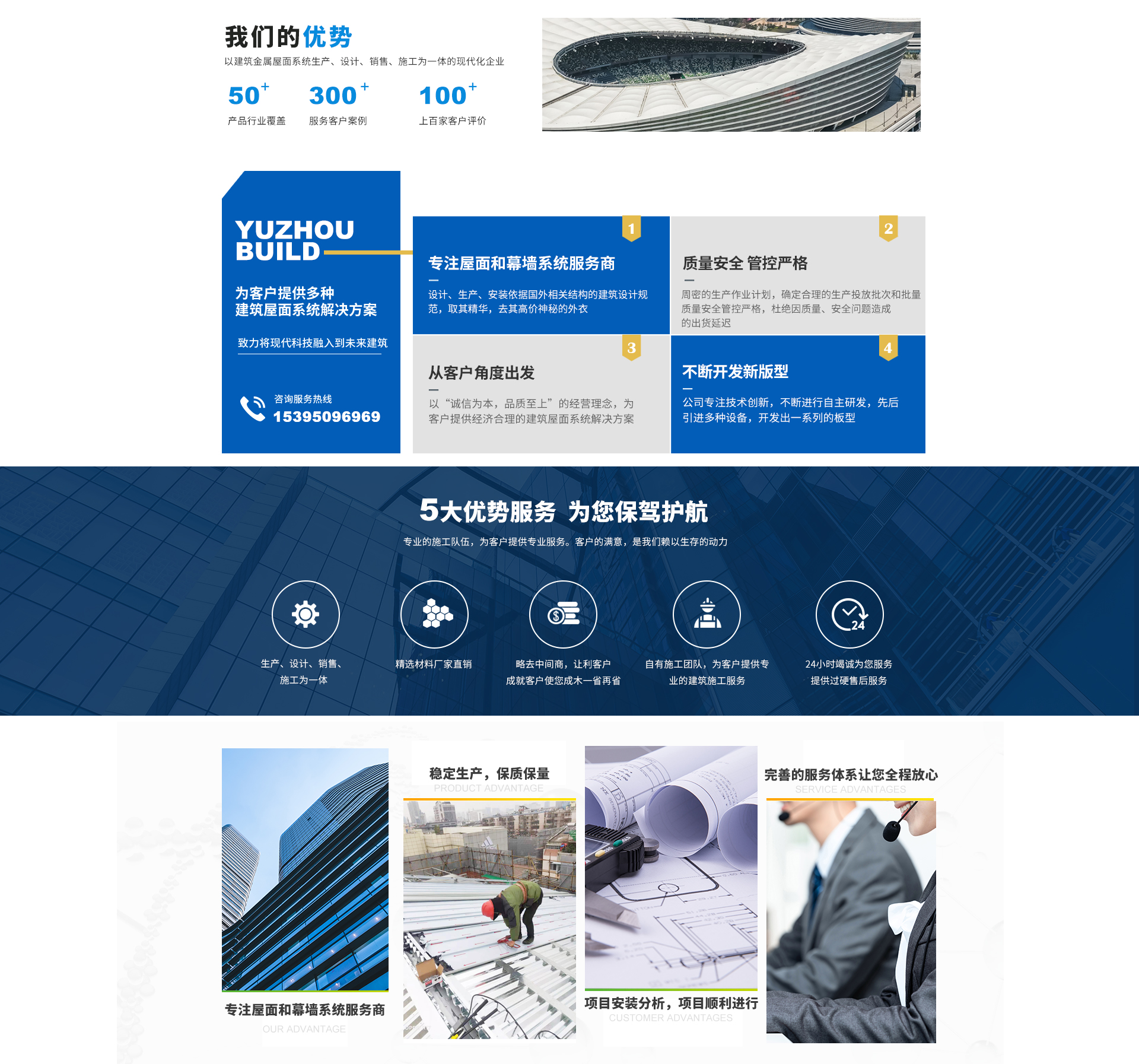 - 宇州金屬(安徽)有限公司是一家以建筑金屬屋面系統(tǒng)生產(chǎn)、設(shè)計、銷售、施工為一體的現(xiàn)代化企業(yè)。也是華東地區(qū)同行業(yè)具有實力的專業(yè)裝飾企業(yè)之一。 公司專注技術(shù)創(chuàng)新,不斷進行自主研發(fā),先后引進設(shè)備,開發(fā)出一系列的板型,為客戶提供多種建筑屋面系統(tǒng)解決方案。公司下轄產(chǎn)品研發(fā)、業(yè)務(wù)拓展、深化設(shè)計和工程管理等部門,擁有多年的設(shè)計、生產(chǎn)及安裝的成功經(jīng)驗以及業(yè)內(nèi)先進的專有技術(shù),自...